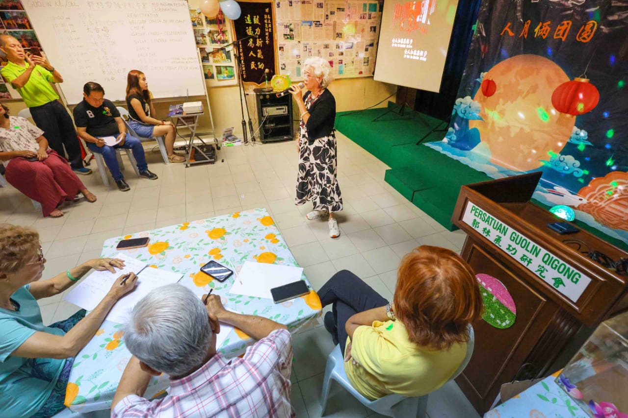 活动由总会长张翠茵老师主持开幕并致欢迎词。张会长表示,举办此次中秋庆祝活动,一方面是欢庆佳节,另一方面更希望借此机会响应“郭林一家亲,团结心连心”的精神,让各分会、分站的会员回到总会,共聚一堂、同庆中秋。她提到,当听到有会员感慨地说出“我们回家”时,那一刻的感动是笔墨难以形容的。