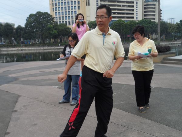 除 了访问抗癌勇士之外,记者也借此机缘访问本会的功理功法主任许业国老师。许老师简述郭林气功功理功法后,就一边讲解,一边示范预备功,自然行功,中快功, 点步功,定步功,升降开合功,吐音功,手棍功, 脚棍功,头部按摩功 和 涌泉按摩功。摄影师毫不怠慢的把每一个示范的功法都拍了下来,记者也手不停挥的记录一切讲解。