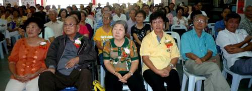 現場有250人參與“馬來西亞郭林氣功抗癌講座與面對抗癌咨詢日”活動。前排右3起林碧雲、莊明麗及何平。(圖:星洲日報)