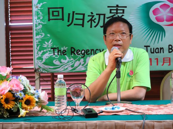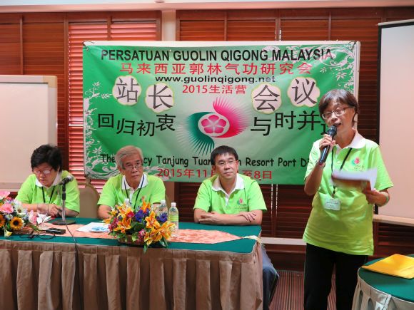 3. 总会长也借此机会代表总会感谢各站站长;赞扬站长们一直扮演着优良的榜样,奉献无私的精神。依循郭林老师、于大元老师、孙云彩老师等等的步伐,十年如一日 的 “致力新气功,造福为人民”。他更重申;总会与各分会各分站是一个生命共同体,唇齿相依,所以必须加强双向的互动、包容、互提意见、互相打气,共荣共辱。 他也希望大家能在这个生活营中有所学,有所得,有所乐。