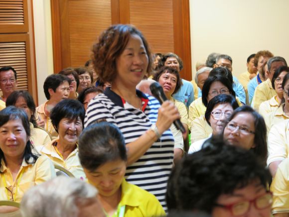 来 到了第三天,也就是剩下半天时光,大家就要说再见了。不过大会还是准备了丰富的节目:清早练功、查功、点评和指导。孙老师和许老师联合主持“功理功法问与 答”,好学的学员们都一一的抛出心中疑惑已久的问题,两位老师也尽其所能为各位学员解答,这样的学习机会真是太难得了。接着是筹委会主席罗松昌致谢词:他 感谢出席者通力配合下圆满完成了这次的生活营,他也感谢全体理事委员,也是生活营的工委会成员全力合作造就了这次的生活营能顺利完成。他并表示对于饮食方 面的欠缺完善深感抱歉,如未来辦活动会更加注意,也希望大家无论好坏环境下,都可以学习。