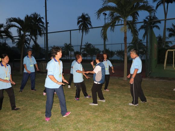 由于天不作美,节目中晚上的沙滩活动被逼删除外,其它节目流程都顺利定时完成。每天清早6时开始分组练功,由孙老师领头查功,之后再作总评论,示范指导。学员们都能从中清楚认识自己的不足或偏差之处,受益良多。
